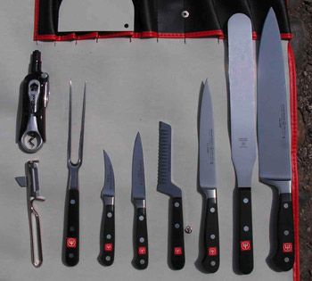 Für die Lehrgänge an Berufsschulen bieten wir Kochgarnituren in erstklassiger Solingen-Qualität oder auch preisgünstigere Ausführungen z.B. der Marke Victorinox (Schweiz). Zwei kostenlose Serviceleistungen sind beim Kauf einer Kochgarnitur inbegriffen: · Die Messer versehen wir mit einem zusätzlichen Feinschliff. · In jedes Werkzeug werden die Initialen graviert. Als Dank für das Vertrauen bekommt jeder Kochschüler, der bei uns eine Kochgarnitur erwirbt, einen Gutschein für Schleifarbeiten in der Höhe von